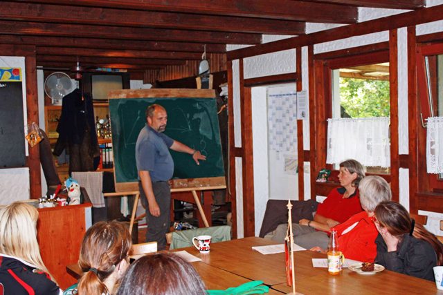 Kurs mit einer Theoriestunde über Fährtenarbeit. Der aufmerksame